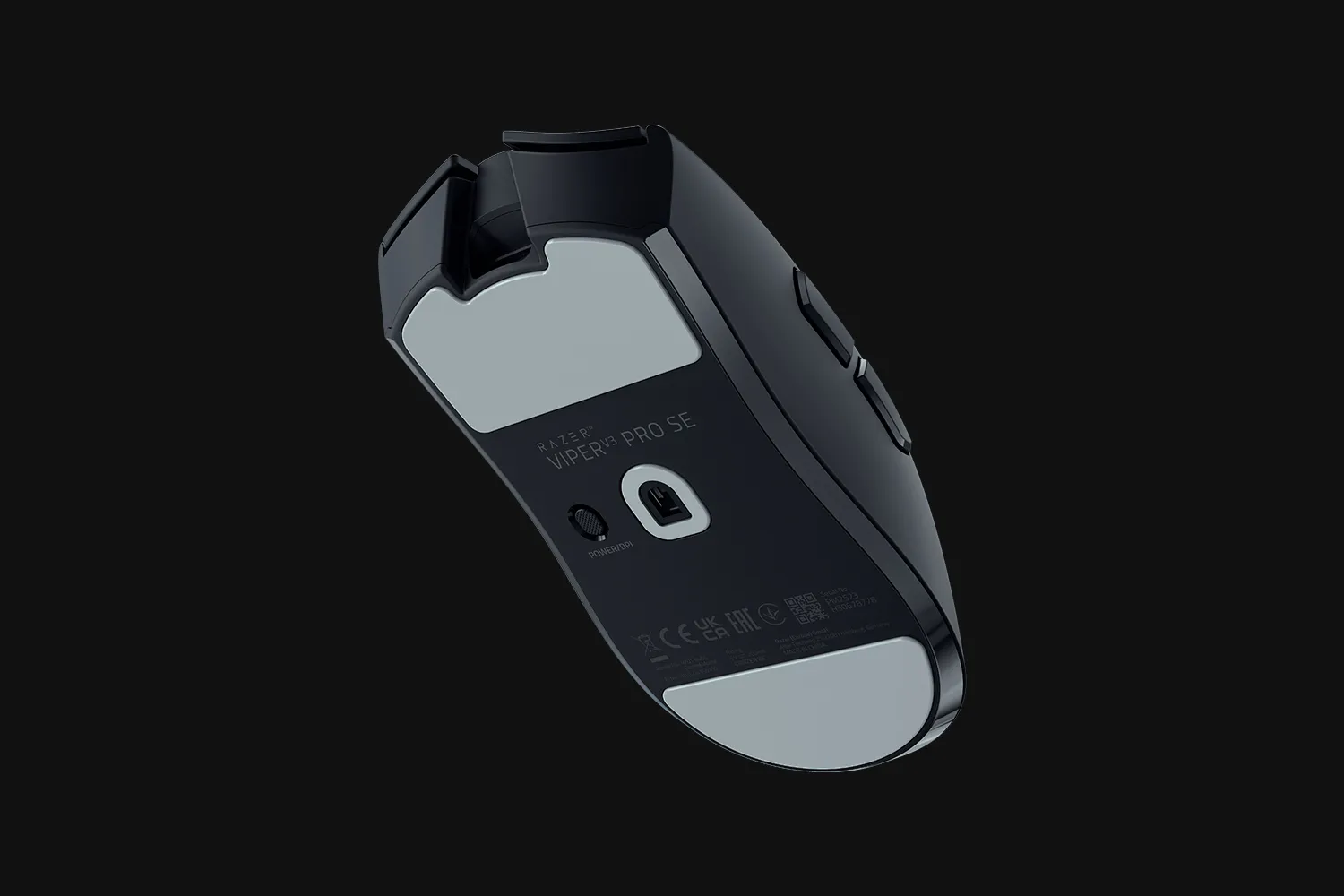 Razer Viper V3 Pro 雷蛇毒蝰 V3 专业版 SE 底部的那个按键起什么作用? 该按键可通过 Synapse 雷云进行编程,默认情况下,此按键用于开关电源(按住 2 秒可打开/关闭)和切换 DPI(按下然后放开)。出厂 DPI 设置为 400、800、1600(默认)、3200 和 6400。 -